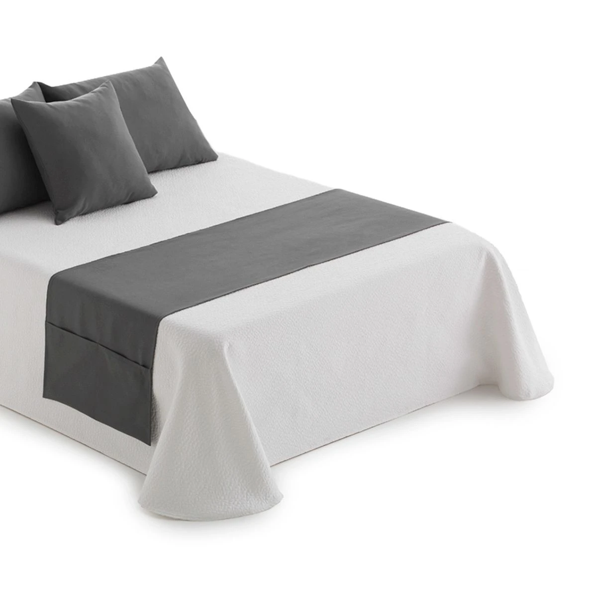 | Dettagli | La confezione contiene un runner per letto Tasche portaoggetti ai lati Tinta unita Tessuto morbido e consistente Busta in plastica con maniglia e cerniera Ideale come fondoletto per decorazione |