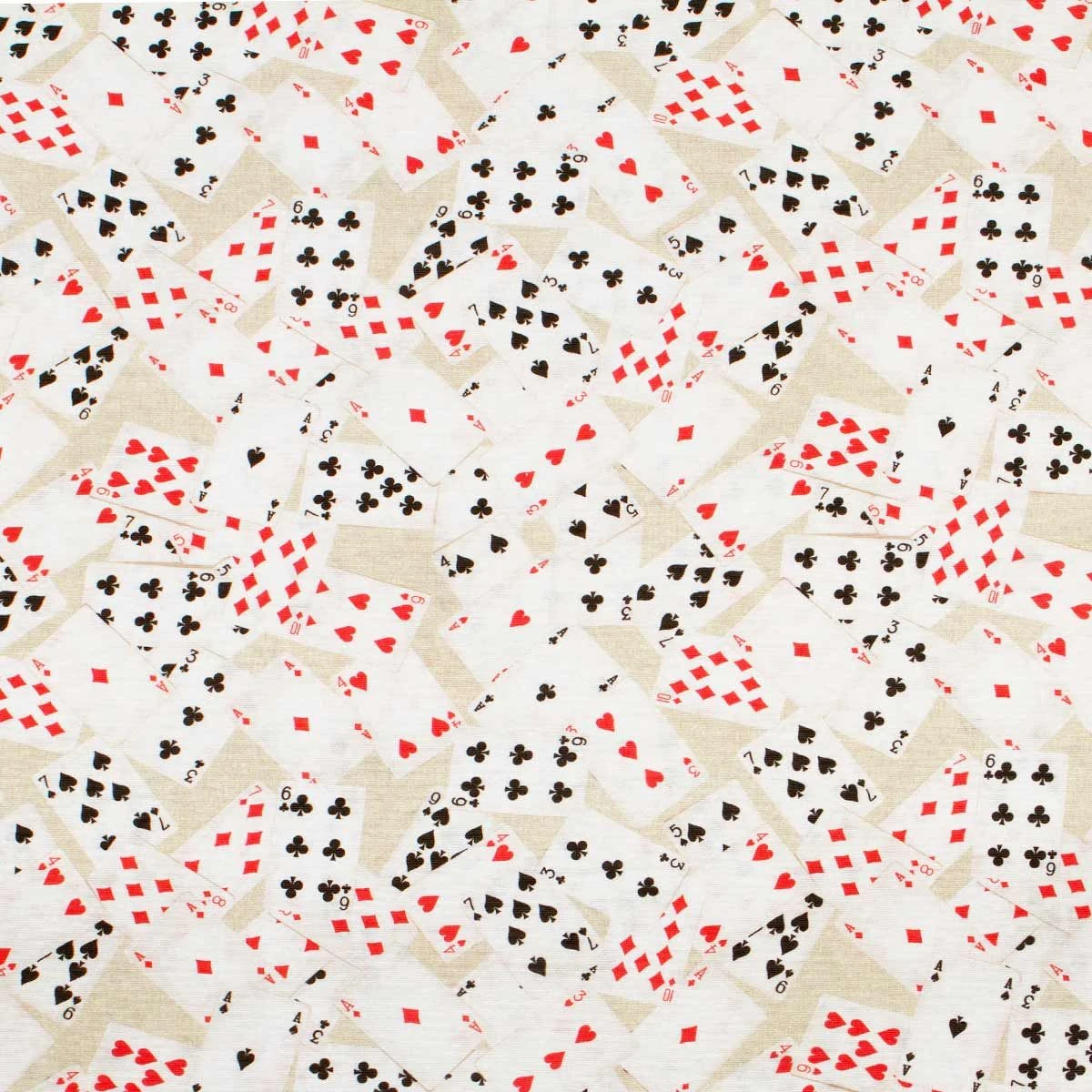 | Dettagli | La confezione contiene uno scampolo di stoffa Motivo con carte da poker Ideale per tappezzeria o per creare copriletti, copridivani, cuscini o semplici teli multiarredo Cotone loneta, robusto e coprente Peso 170 gr/mq |