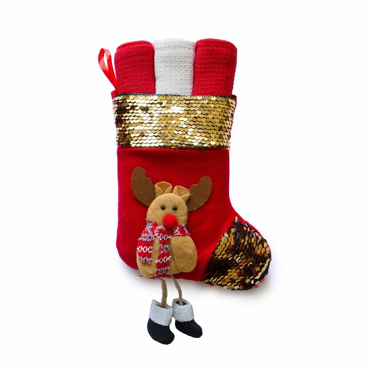 Elk è il set da bagno natalizio composto da tre lavette ed un contenitore a forma di calza in feltro. Le lavette, realizzate in puro cotone a nido d’ape, saranno morbide e delicate sulla pelle, e la calza sarà un perfetto contenitore in tema natalizio.