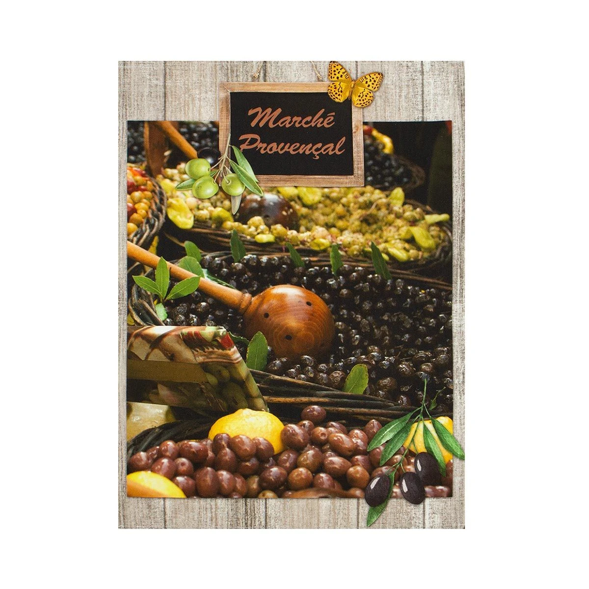 | Dettagli | La confezione contiene un set composto da 3 canovacci Forma rettangolare Stampa con prodotti del mercato Fantasia differente per ciascun canovaccio Retro in tinta unita Appendino nascosto, posto nell’angolo posteriore Utilizzabile come canovacci e asciugapiatti |