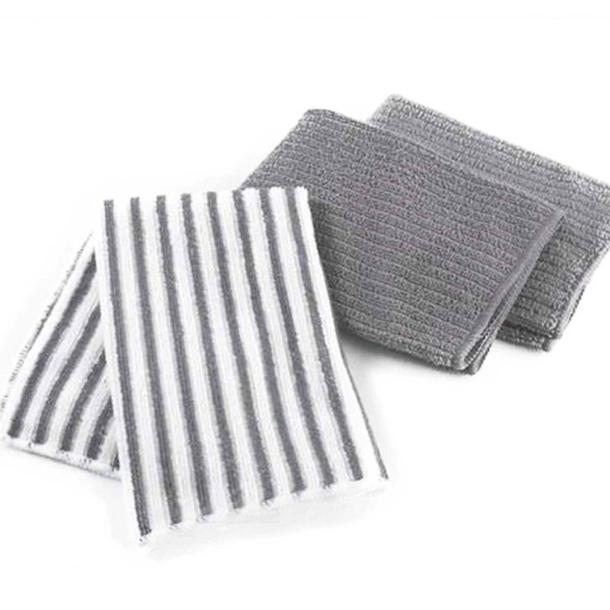 | Dettagli | La confezione contiene un set composto da 3 canovacci Forma quadrata Motivo a righe Retro in tinta unita Utilizzabili come canovacci e asciugapiatti Microfibra resistente ai numerosi lavaggi |