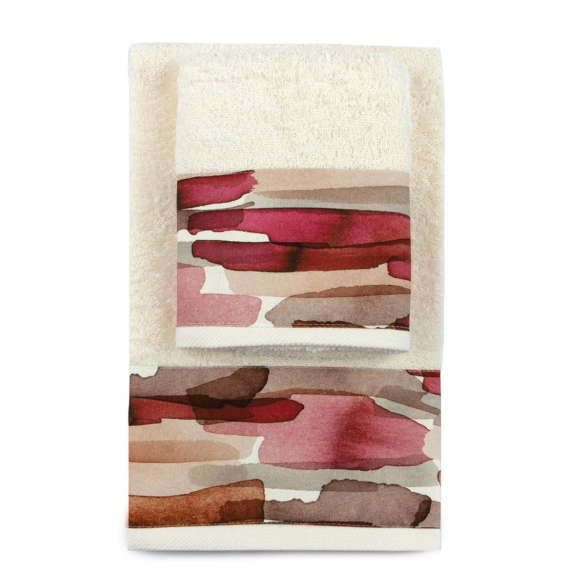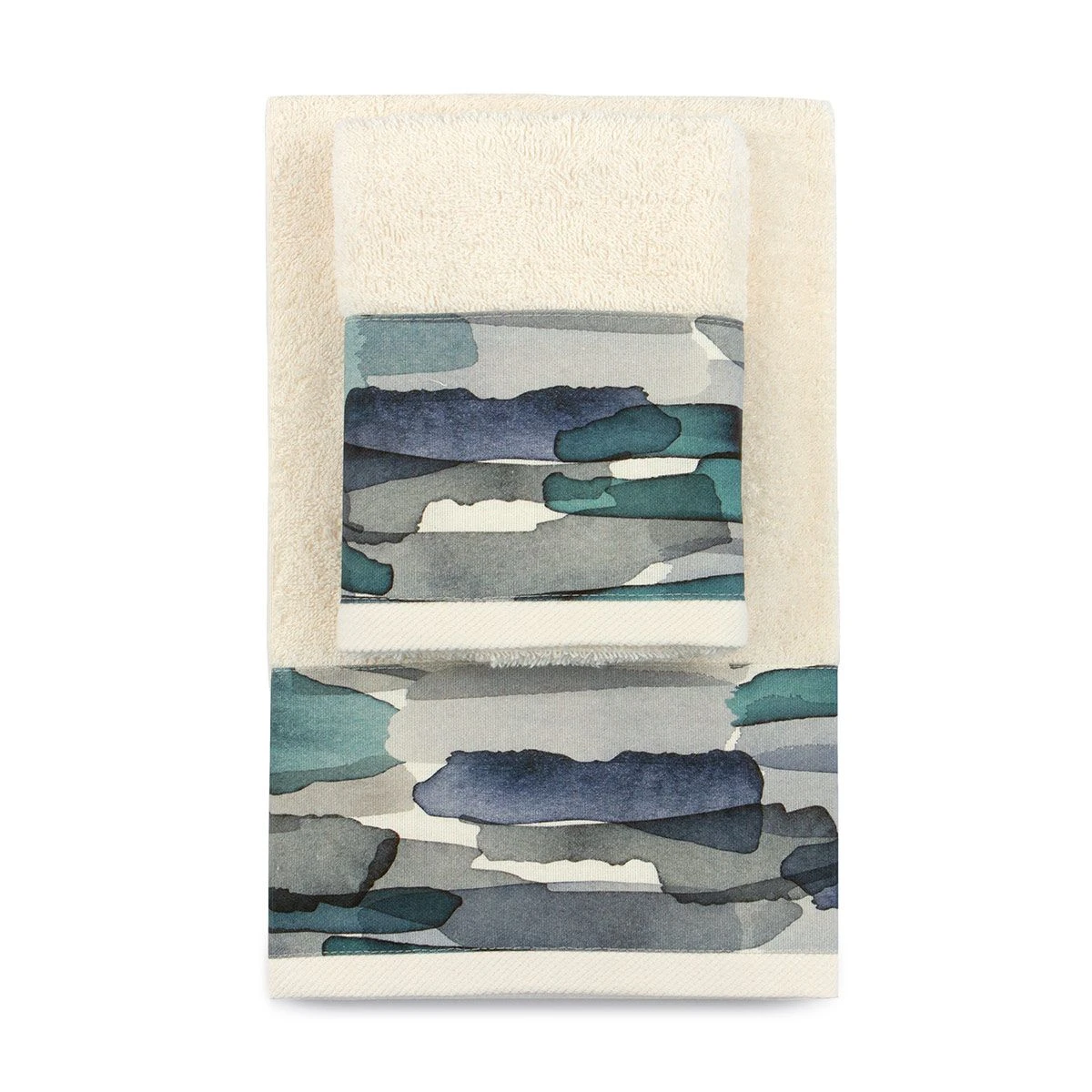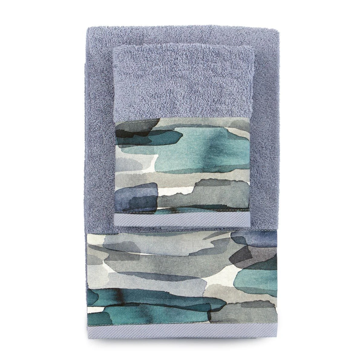 Il set di asciugamani Gaia presenta un bordo con stampa digitale con varie tonalità di colori che racchiudono uno stile moderno ed elegante. Gli asciugamani contenuti all’interno del set sono realizzati in spugna di puro cotone, soffice ed assorbente.