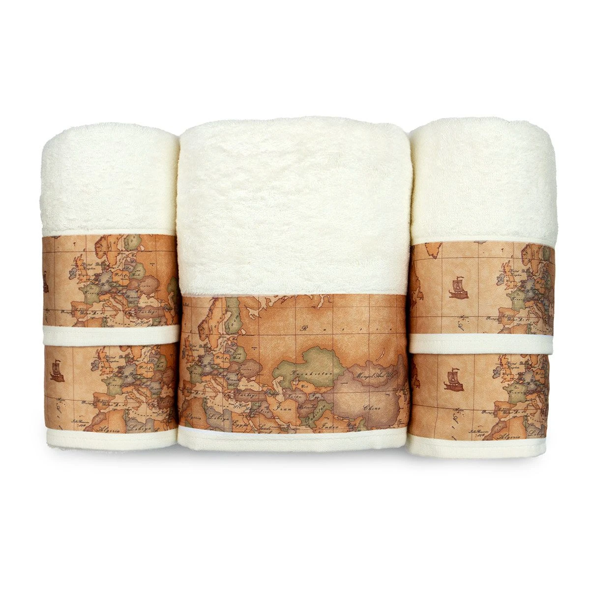 | Dettagli | La confezione contiene un set bagno 5 pezzi composto da: 2 asciugamani viso 2 asciugamani ospite 1 telo doccia Spugna puro cotone da 480 gr/mq Bordo applicato Stampa digitale di un mappamondo Morbido e assorbente Perfetta tenuta ai lavaggi e all’uso OEKO-TEX garantisce l’assenza di sostanze nocive per l’uomo e l’ambiente Made in Italy |