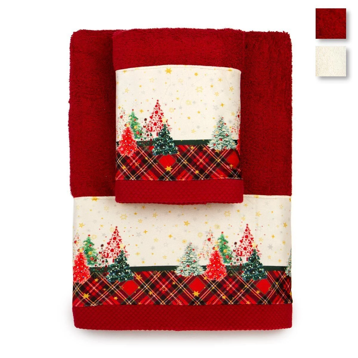 | Dettagli | La confezione contiene un set di asciugamani composto da: 1 asciugamano viso 1 asciugamano ospite Morbida spugna a riccio di puro cotone, idrofila ed assorbente Bordo in velluto con stampa natalizia Made in Italy |