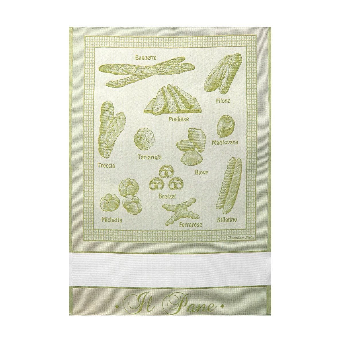 | Dettagli | La confezione contiene uno strofinaccio da cucina Forma rettangolare Ricamo di vari tipi di pane Colori solidi al lavaggio Puro cotone di elevata qualità, compatto e resistente Made in Italy |