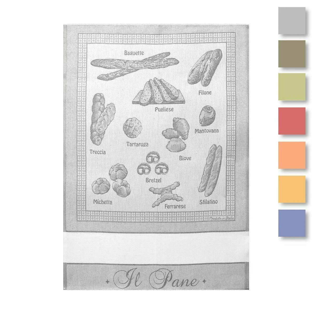 Il pane è uno dei prodotti alimentari più mangiati e apprezzati a tavola, realizzabile in tanti modi e gusti diversi. Li ritroviamo quasi tutti rappresentati sul questo utile e comodo strofinaccio in cotone.