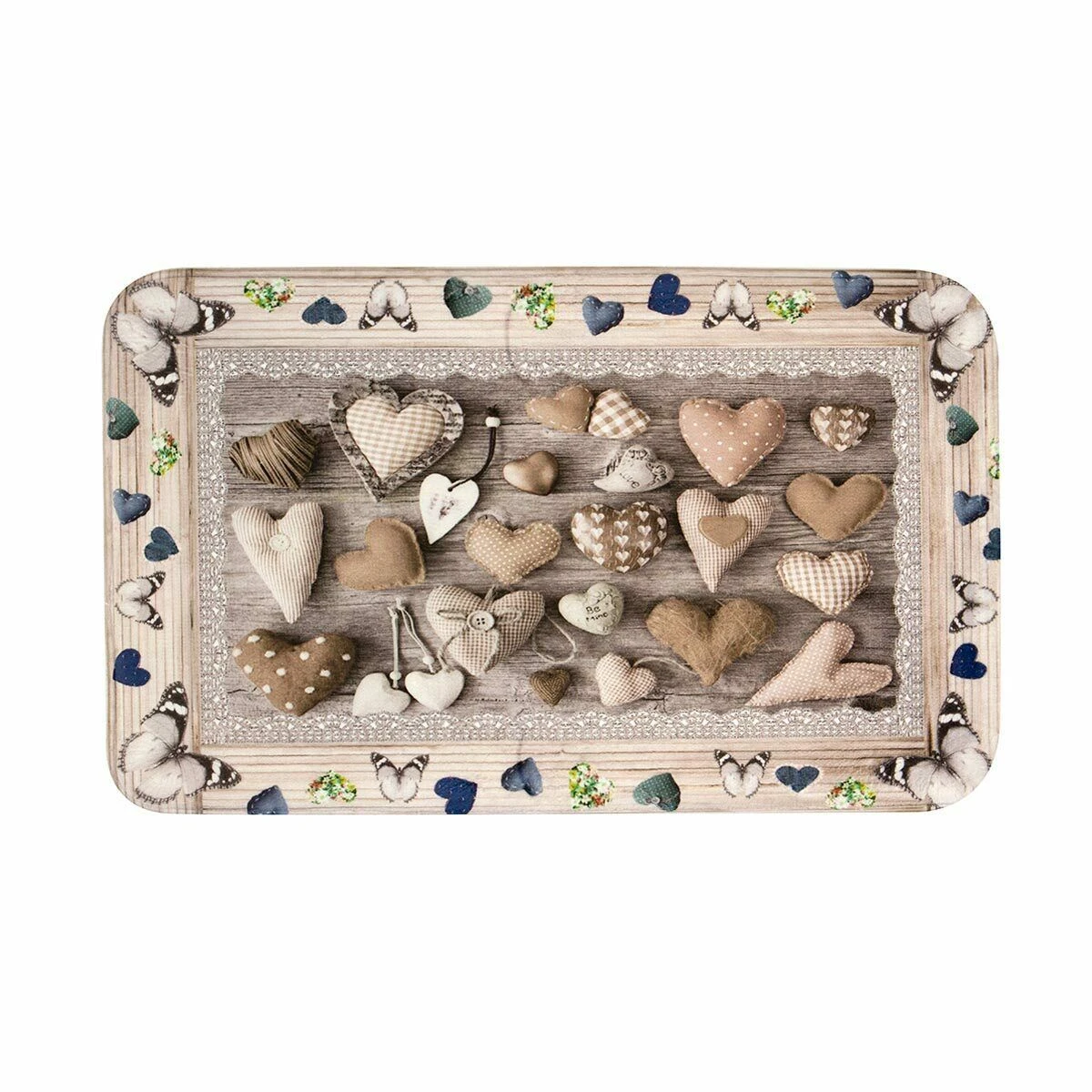 Un motivo con mille cuori è stampato sul tappetino da bagno Be Mine di questa collezione. Un tocco romantico che non passa mai di moda.
