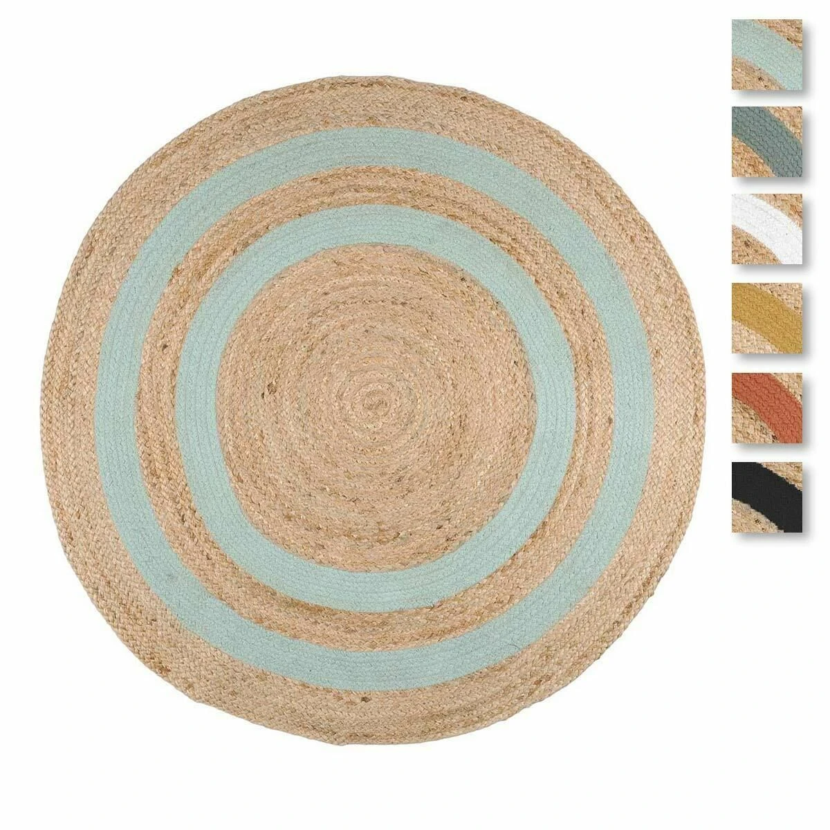 | Dettagli | La confezione contiene un tappeto rotondo Juta naturale intrecciata Inserti circolari in corda colorata Adatto in ambienti, country, rustici e boho |
