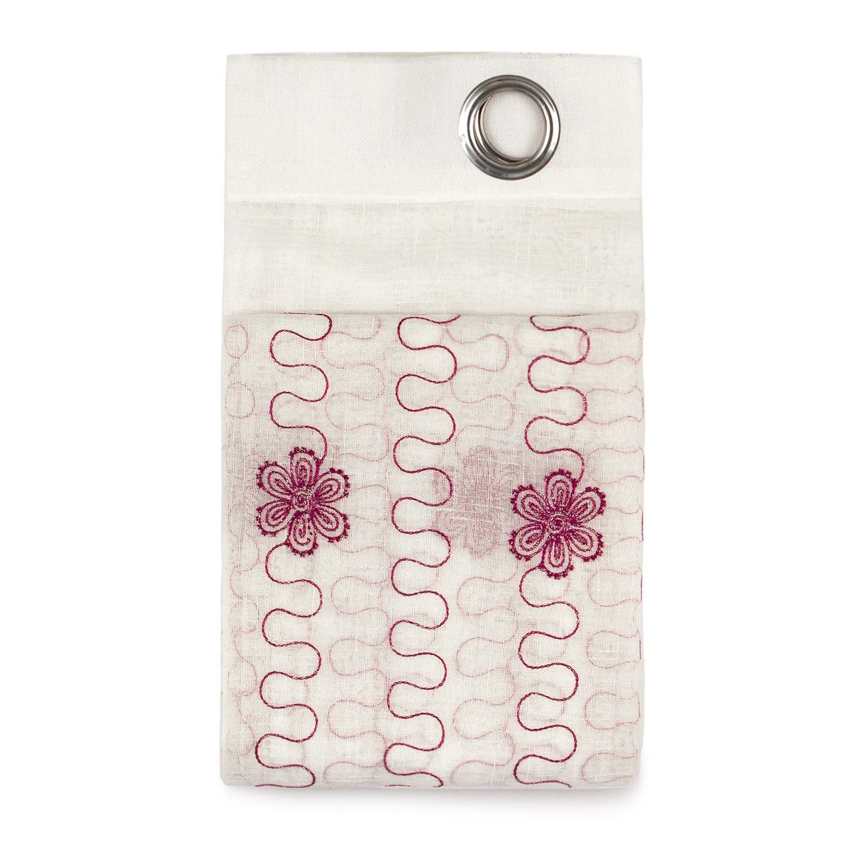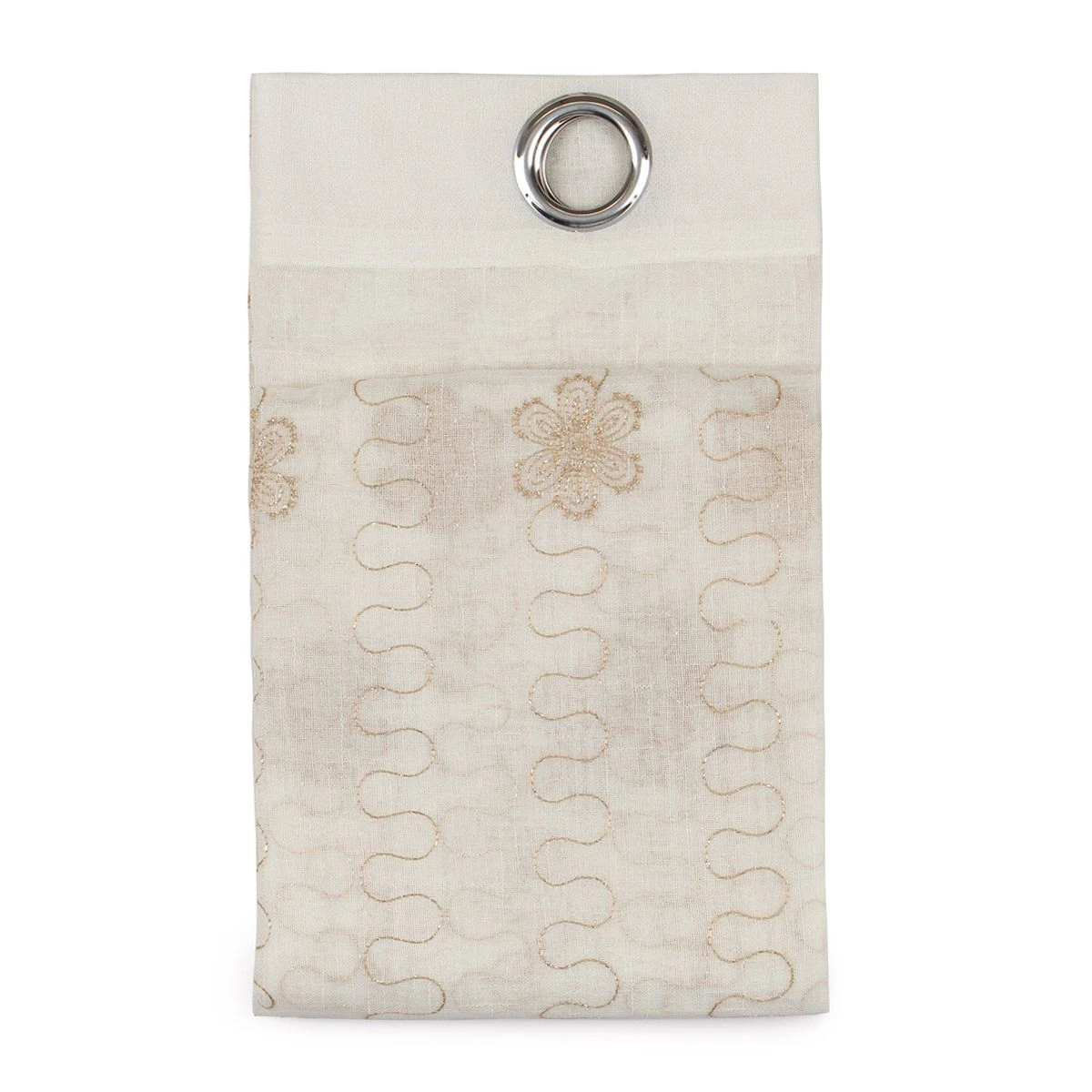 | Dettagli | La confezione contiene una tenda Motivo ricamato floreale Tessuto filtrante (semitrasparente) che lascia passare la luce, permette di guardare fuori ma allo stesso tempo garantisce la giusta privacy Tenda confezionata con 6 anelli (borchie) metallici di colore argento Diametro interno borchia 40 mm Completamente rifinita, pronta per essere montata |