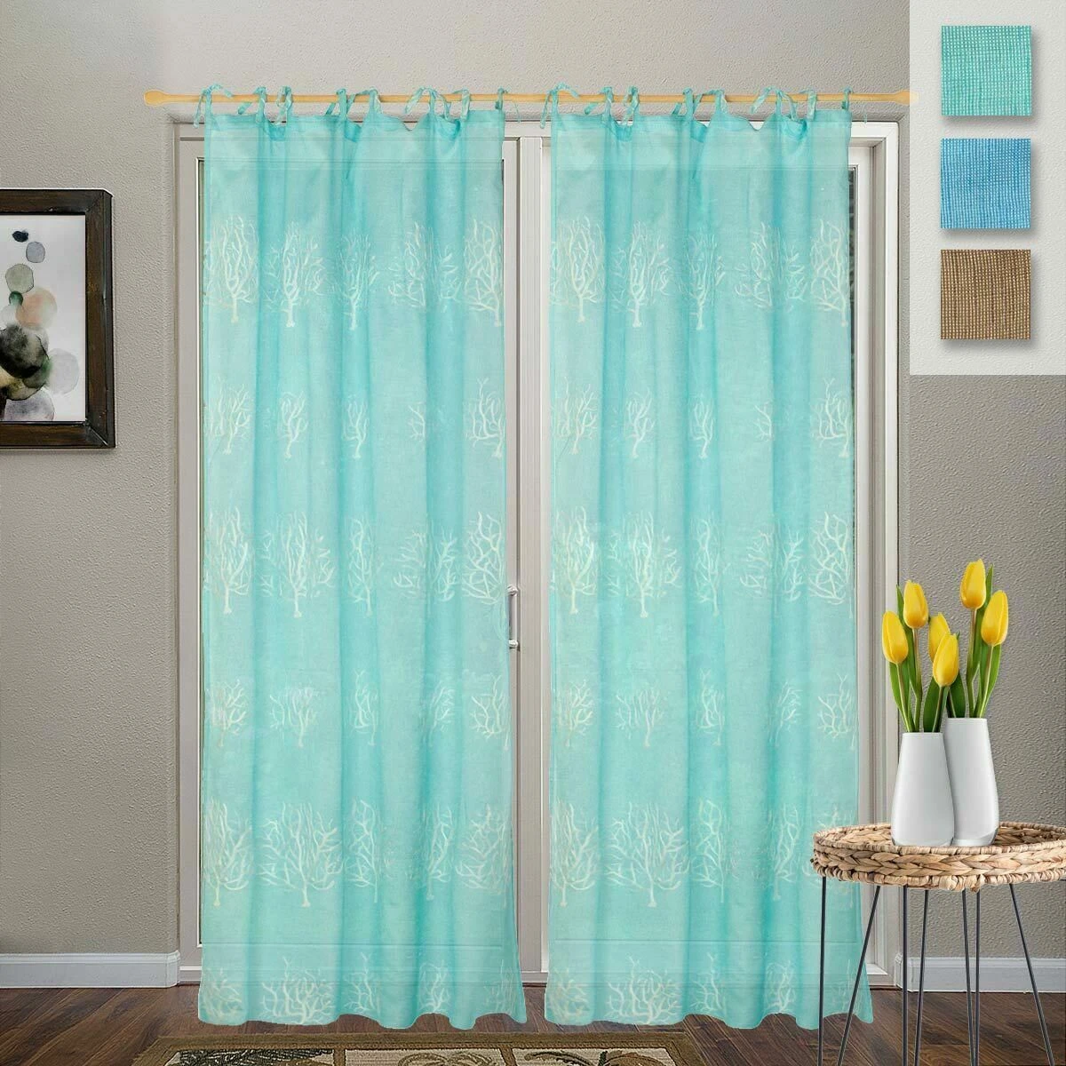| Dettagli | La confezione contiene un tendone arredo Tessuto filtrante, leggermente coprente, ideale per proteggere la privacy; blocca il passaggio dei raggi solari ma allo stesso tempo lascia filtrare la luce naturale Motivo con coralli Si applica sul bastone per tende tramite i lacci posti superiormente Lacci regolabili per l’altezza Ricamato, orlato e pronto per essere montato |