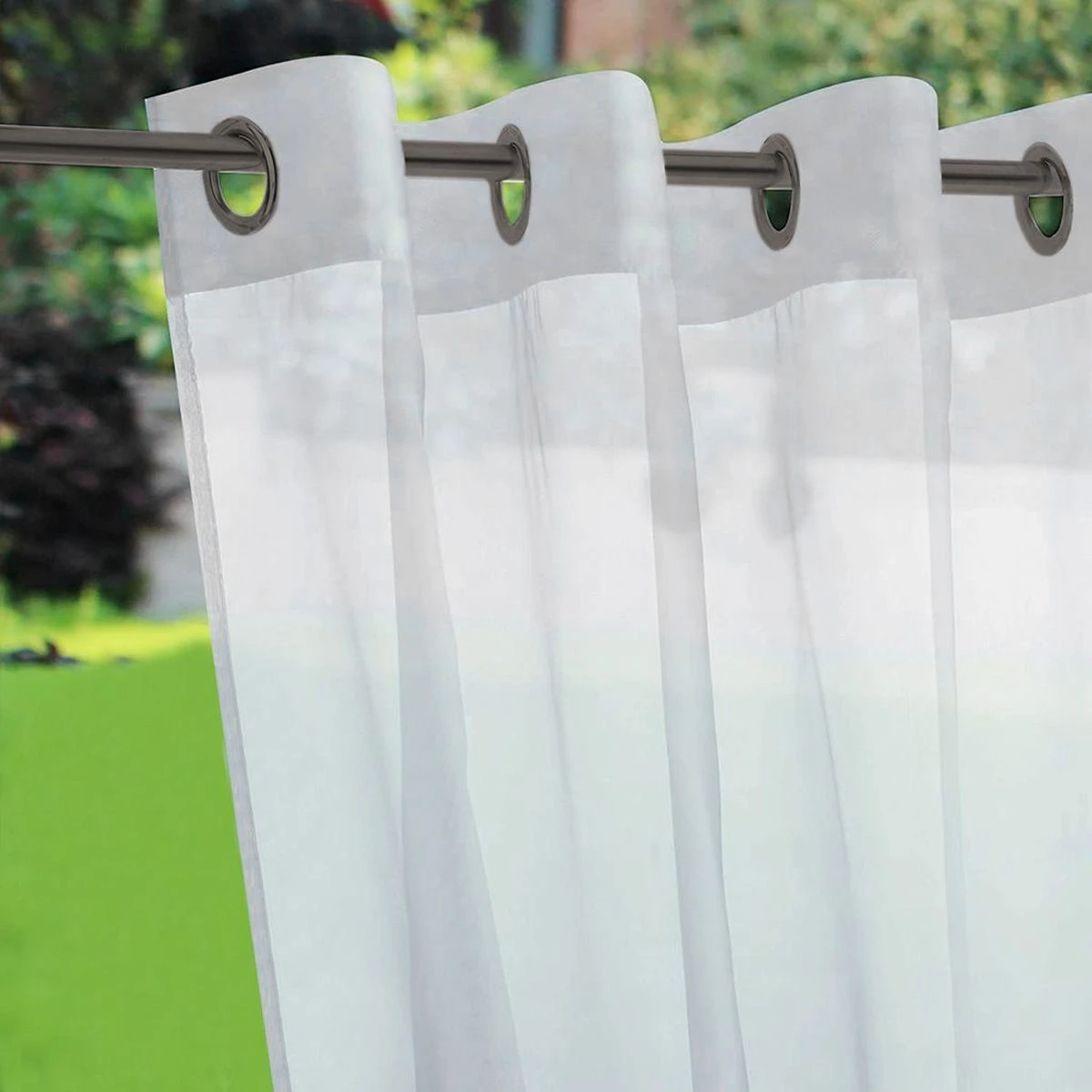 La tenda gazebo in tessuto voile trasparente e leggero è adatta per creare un ambiente elegante e accogliente in giardino o in terrazza. E’ dotata di 7 anelli metallici color brunito ed è pronta per essere montata.