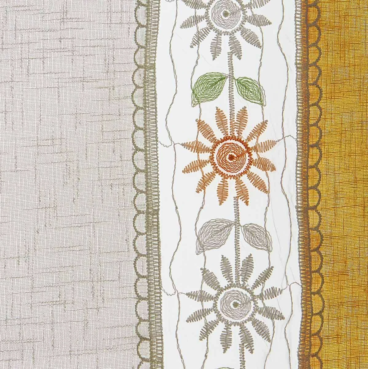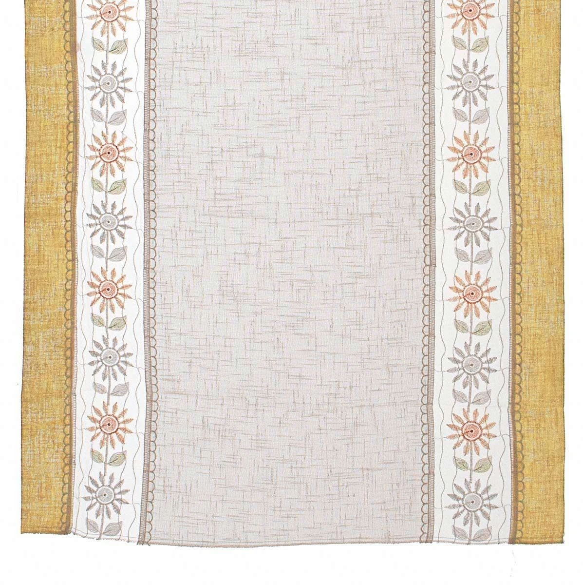 | Dettagli | Stoffa ideale per realizzare tendine a vetro Larghezza standard 60 cm Al centro tessuto effetto lino con fondo colore naturale, ai lati particolari in organza e merletto Motivo con girasoli ricamati Basta realizzare un orlo superiore ed uno inferiore in cui va inserito il bastoncino Tessuto filtrante (semitrasparente) che lascia passare la luce, permette di guardare fuori ma allo stesso tempo garantisce la giusta privacy Facile manutenzione, non ha bisogno di stiratura Vendita al metro Made in Italy |
