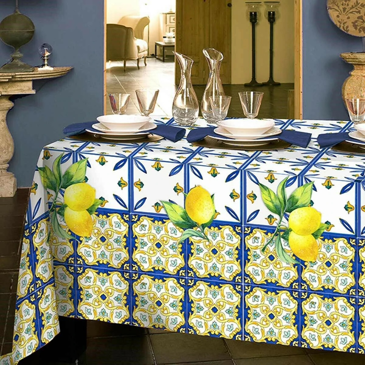 La tovaglia Acireale firmata Randi porterà in cucina un sentore di freschezza, con la sua stampa digitale ad alta definizione ispirata alle maioliche ed ai limoni, due elementi tipici della Costiera. Realizzata in puro cotone drill, garantirà la giusta protezione al vostro tavolo.