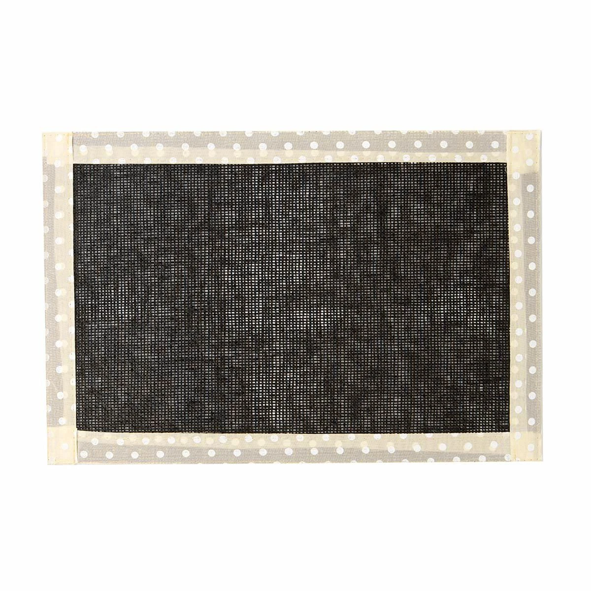 | Dettagli | La confezione contiene una tovaglietta per colazione all’americana Forma rettangolare Tinta unita Bordo in tessuto con motivo a pois Flessibile, facile da pulire Utilizzabile da entrambi i lati |