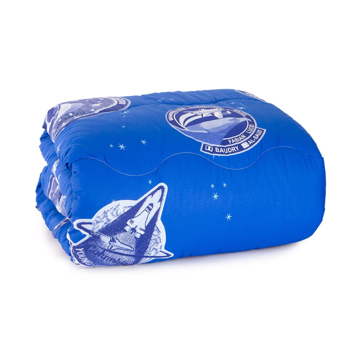 | Dettagli | La confezione contiene una trapunta invernale per letto singolo Stampa con cielo stellato e loghi Nasa Trapuntatura ad onde Colori vividi e vivaci Ideale per il periodo invernale Confezionata in una borsa in plastica con cerniera |