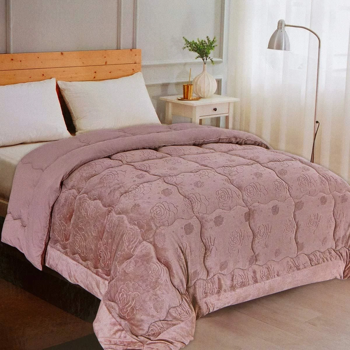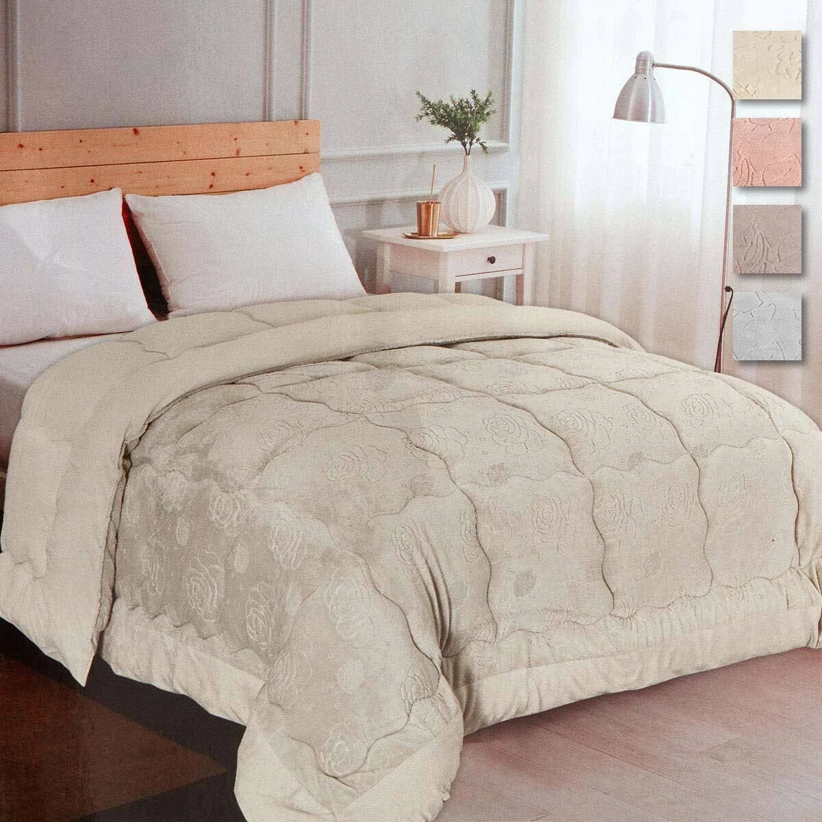 | Dettagli | La confezione contiene una trapunta invernale per letto matrimoniale Tessuto superiore in morbido velluto Tessuto inferiore in microfibra tinta unita in coordinato di colore Lavorazione jacquard con piccole rose Trapuntatura a cassettoni ondulati Molto calda e soffice, ideale per l’inverno Imbottitura da 300 gr/mq Resistenza del colore nel tempo, anche dopo ripetuti lavaggi Elegante e raffinata |