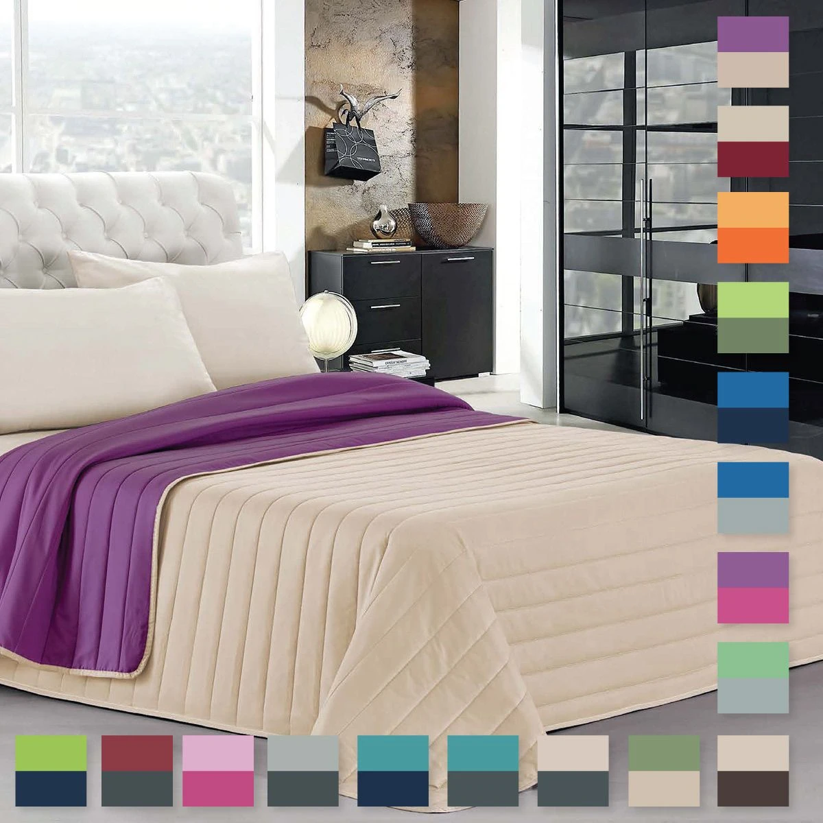Cambiare ogni giorno l’aspetto della camera da letto si può ed è semplice con l’aiuto del trapuntino della linea Elegant. Con le sue linee semplici e pulite, illumina l’ambiente in pochi attimi e grazie alla sua caratteristica di essere double face, può essere utilizzato sia in un verso che nell’altro cambiando il colore in base alla nostra fantasia e creatività.
