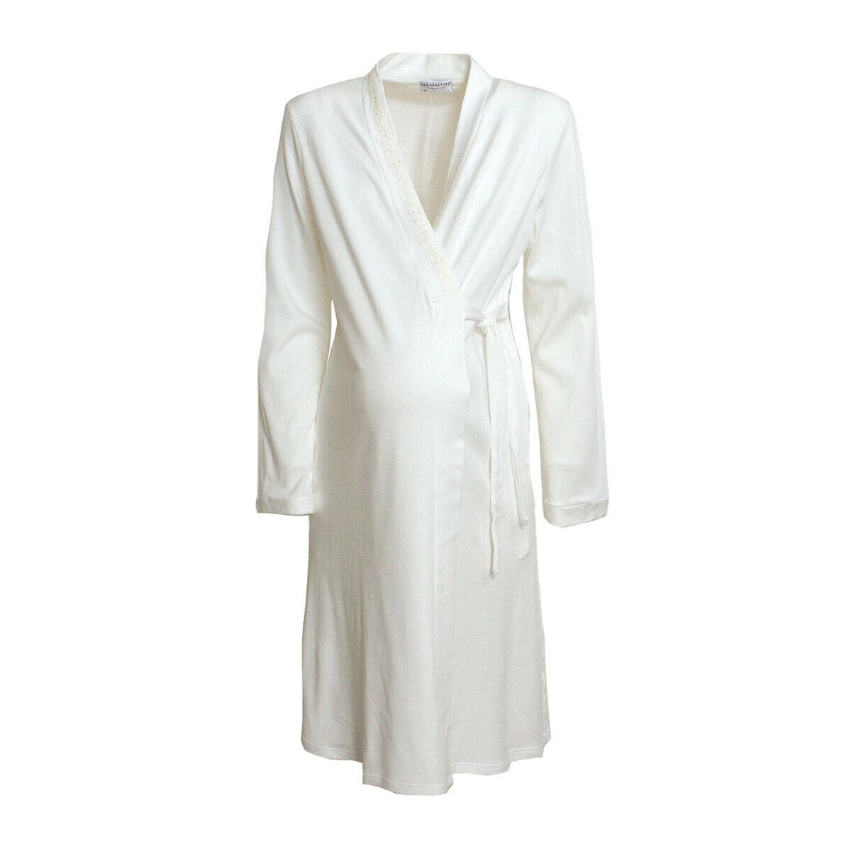 Mammain ha ideato una vestaglia in caldo cotone elegante e semplice che incontra il gusto di chi non ama l’eccentricità. La chiusura sul davanti a portafoglio permette alla vestaglia di essere regolata ed usata durante tutta la gravidanza.