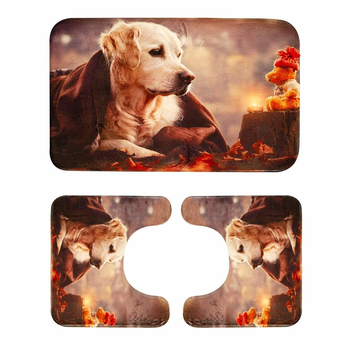 Da sempre amico fedele dell’uomo, il cane è l’animale domestico per eccellenza. Rappresentato sul set di tappetini da bagno Labrador, morbido e ultrassorbente, grazie all’imbottitura in memory foam.